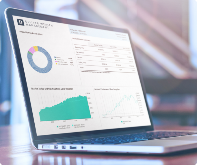 Use intuitive drag-and-drop features to present portfolio and performance data in engaging graphical formats. Instantly generate branded, batch, or ad-hoc reports, streamlining how you showcase client strategies.